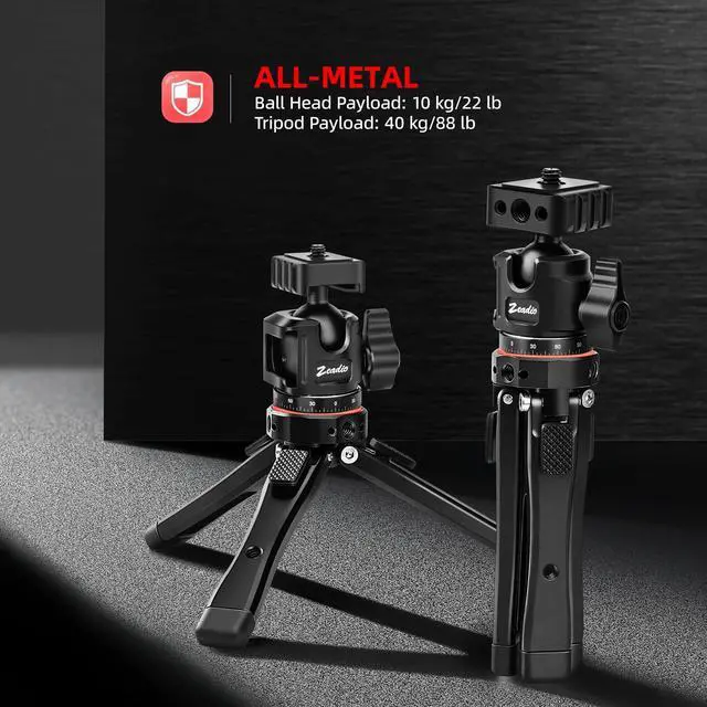 Heavy-Duty Metal Construction: Built with full metal materials, this tripod supports a maximum load of 40kg, and the ball head holds up to 10kg, ensuring exceptional stability and durability for heavy equipment in rugged conditions.