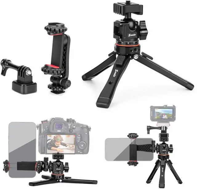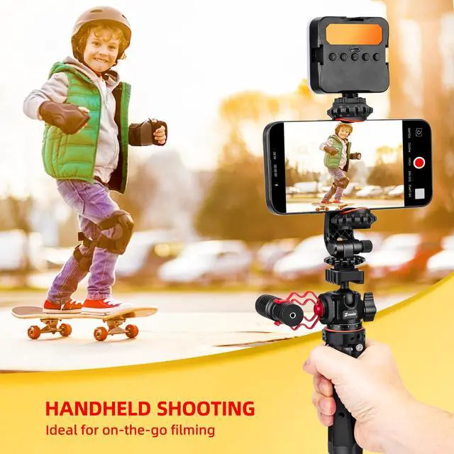 Versatile All-in-One Design: Includes a phone clip and action camera adapter, functioning as a cell phone stand, iPhone tripod, and phone stand for recording. Ideal for vlog tripod use and as an iPhone vlogging kit, making it perfect for vloggers and content creators to capture stable shots with smartphones or action cams.