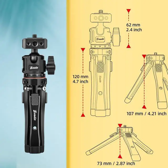 Adjustable Height Range: The tripod legs allow height adjustment from 24mm to 107mm, enabling you to easily customize the setup for low-angle shots, tabletop recording, or elevated perspectives on any surface.