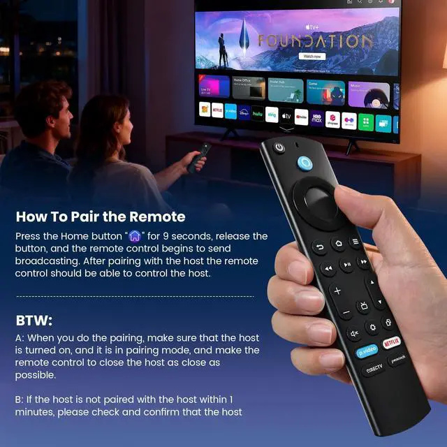 ^^ Activate Voice Function: Voice control can be used after pairing the remote with your hisense tv. Simply press and hold the Home button for 9 seconds, then release it to start broadcasting. Once pairing is complete, youll see Pairing Complete on your TV screen, and the remote will automatically sync for full voice and navigation control. Quick, hassle-free setupno extra programming or tools needed.