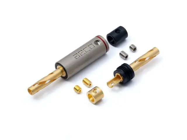 NOTE: This product is only suitable for 4.0 mm binding post. (Not for 4.1 mm) The first time when you put the banana plug and the binding post together, it might be a little bit tight. Please insert with clockwise. The interface will adjust the shape into a perfect size basic on the binding post. screw for conductor (3/4 mm) (4 each) screw for cable (3/4 mm) (4 each)