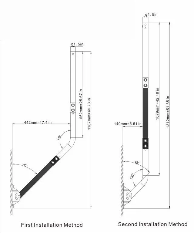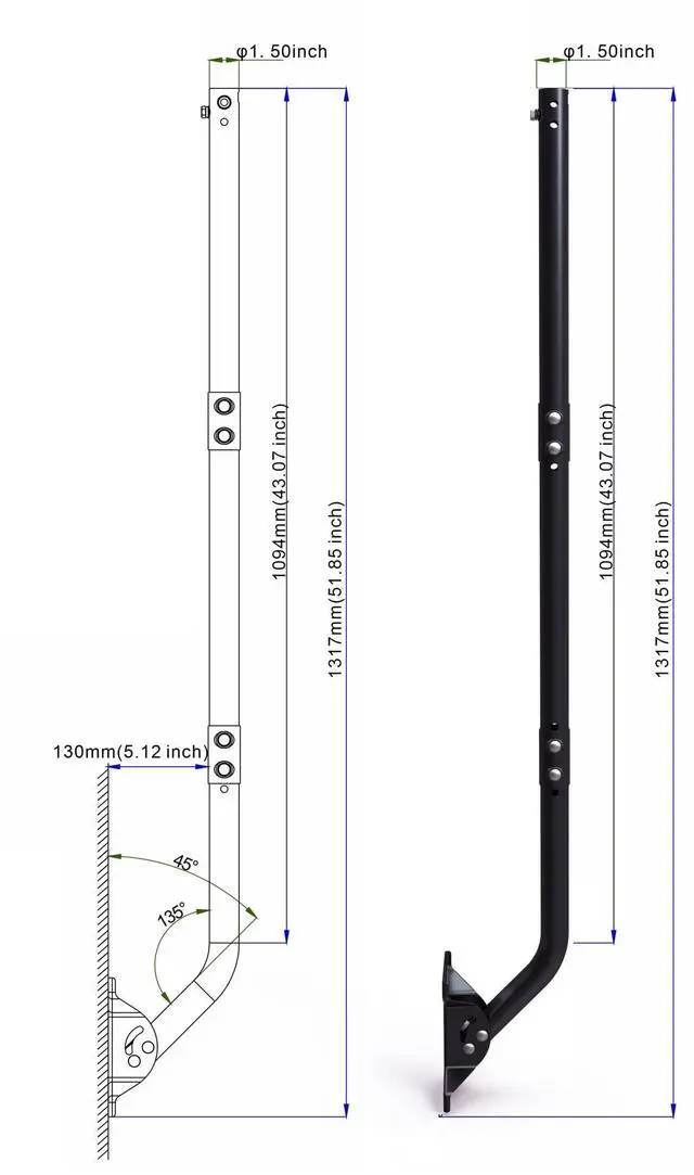 ^^ Reversible Design: Features an outer diameter of 1 1/2" and an arm length of 51". Both ends of the J-pole mount are usable, offering flexible wall standoff distance adjustments. For extended reach, add a 16 1/2" mast extension (sold separately) to increase vertical height and horizontal clearance, optimizing signal reception and minimizing obstructions.
