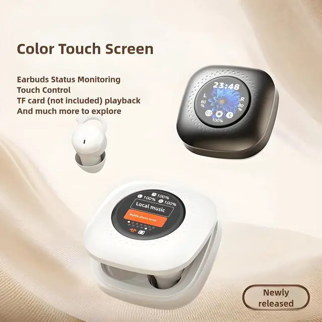 SMART CHARGING CASE: Features a touch screen display showing battery levels, time, playback controls and much more, plus supports TF card (not included) music playback for added convenience ^^