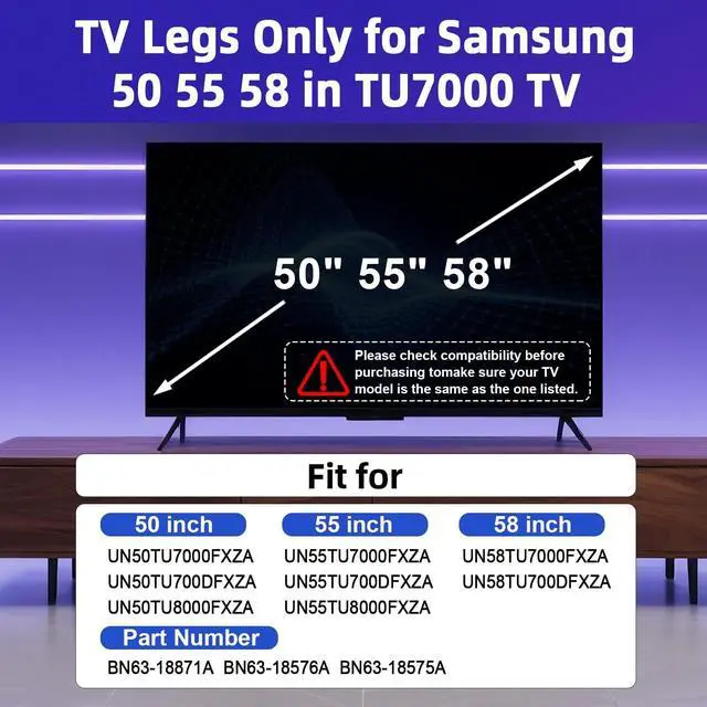 58-inch: UN58TU7000FXZA, UN58TU700DFXZA (Not compatible with other Samsung TVs. )