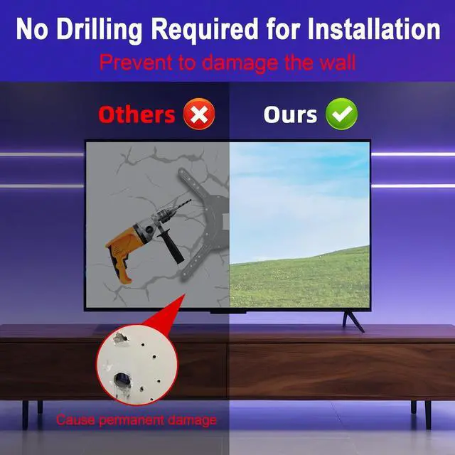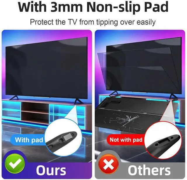 ^^ Screwless Installation: No tools or screws needed. Secures in TV slots within 5 minutes ^^ Stable