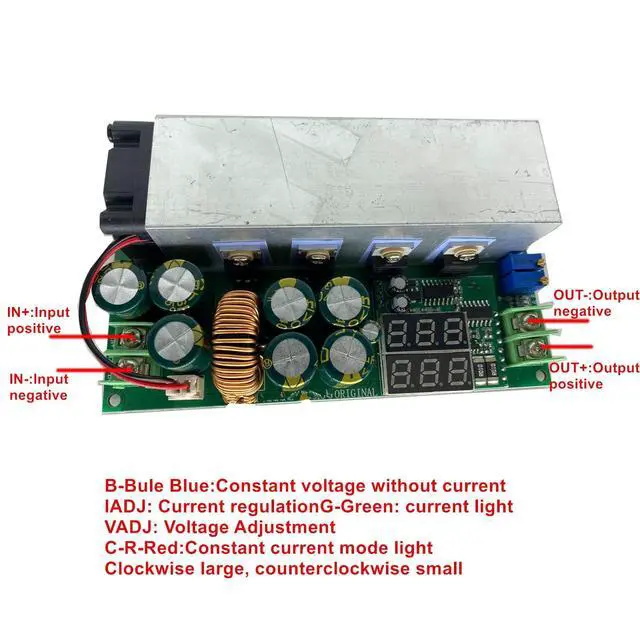 the current indicatorC-R-Red: indicates the constant current mode indicatorIADJ: Current adjustment, larger clockwise, smaller