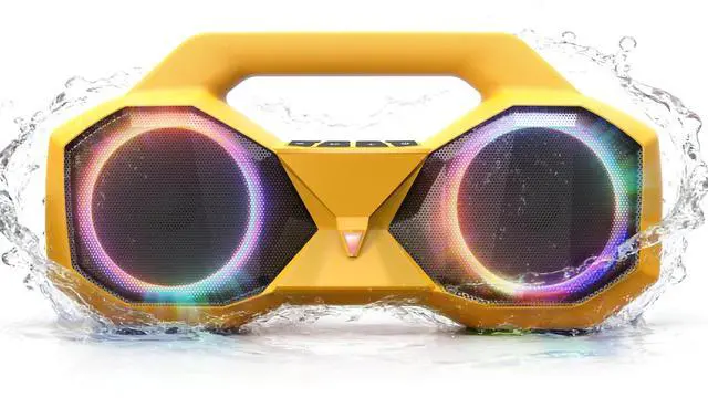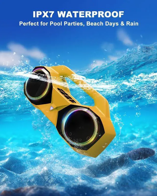 IPX7 WATERPROOF & ULTRA-RUGGED: The outdoor waterproof bluetooth speakers keep your music playingwhether pool, beachside, or rainy dayyour music on the go. Rugged ABS shell survives drops, dunks, and daily chaos.