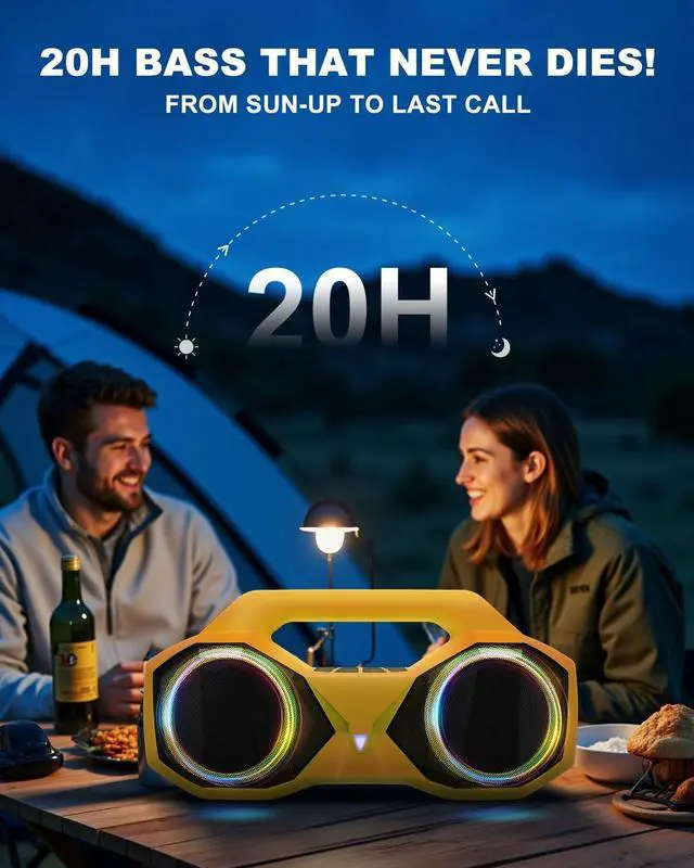 ^^ 20H BATTERY LIFE: This large bluetooth speaker without constantly searching for a charger, allowing you to enjoy music from sunrise yoga to midnight campfire stories. Perfect for road trips or music festivals. ^^