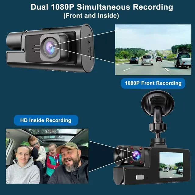 1080P Front and Inside Dash Cam Super Clear 1920*1080P pictures can be provided by the small cam. The car camera can reocrd videos front and inside of the car at the same time. ^^ Dash Camers for Car Easy InstallationJust install the dashcam on the windshield, then plug the power cable into the car cigarette lighters. Please clean the windshield, so the sunction cup can be fixed tightly on the windshield. ^^ 1080P WiFi Dashcams Wireless Dash Cam with AppThis Wireless 1080P Dash Cam comes with App, it is very easy to conenect dash cam WiFi, Dashcam's WiFi name and password is showing on the screen, connect with your mobile phone, then can check video in the mobile phone.