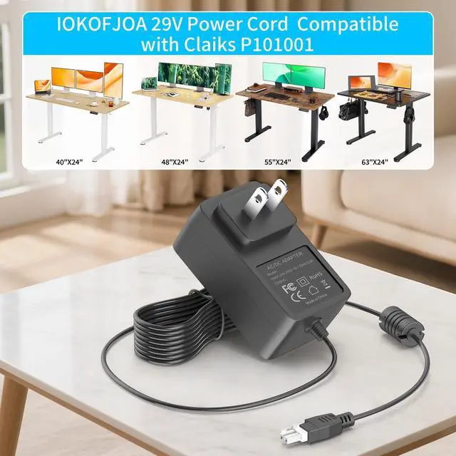 Note: Only fits claiks electric standing desk. ^^ ReliablyAC to DC power cord has been fully aging tested and validated by IOKOFJOA to ensure fits for Claiks electric standing desk. ^^ SafetyThis adapter power cord undergo multi testsis CE FCC RoHS certified and built-in multi protection system to support over-voltage, over-load, over-current, over-heat and short-circuit protection. to ensure safe and available. ^^ What You Get1 x Replacement adapter power cord, 30 days refund 12 months exchange and our friendly after-sale service, Please feel free to contact us at anytime if you need any help while using this charger.