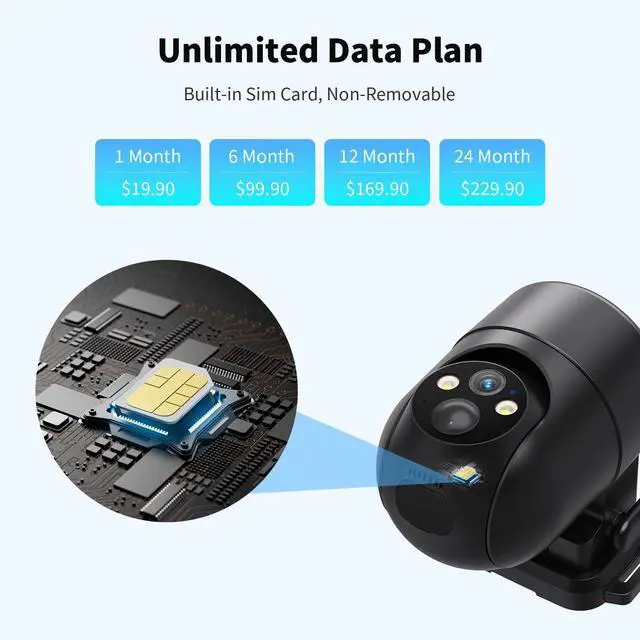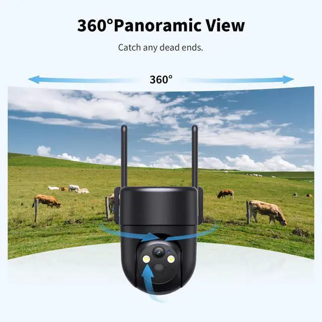Solar-Powered, No WiFi NeededThis 4G LTE security camera runs entirely on solar energy, eliminating the need for WiFi or electrical wiring. Designed for remote locations, it's perfect for farms, ranches, construction sites, and vacation homes where traditional cameras can't reach. Installation is quick, and it works anywhere with cellular coverage. ^^ 360 PTZ & Color Night VisionWith 355 pan, 90 tilt, and 4x digital zoom, this camera covers every angle. The 2K HD sensor and dual spotlights deliver sharp, full-color footageday or night. No more blurry black-and-white images, just clear surveillance around the clock.