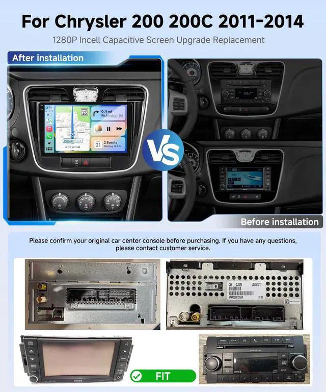 Car Models]: This android car radio is compatible with Chrysler 200 2011 2012 2013 2014, with Canbus, 1280P Incell Touch Screen, Android 15 operating system, 4G RAM 128GB ROM. Plug and play. Support OBD/DVR/DAB+ (Not include), steering wheel control, reversing camera (package include). ^^ [1280*720 Incell Touchscreen &
