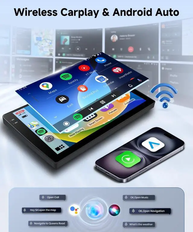 & FM/RDS & DSP/32 EQ]: Bluetooth 5.0 processes faster, more stable and smoother. Support Bluetooth phonebook, hands-free call, music playback. And there are 18 preset radio station, you can listen to real-time traffic, news broadcasts, etc. DSP 32 EQ audio providing you with the best tuning enhancements and customizing your music style. ^^ [Wireless Carplay & Android Auto &