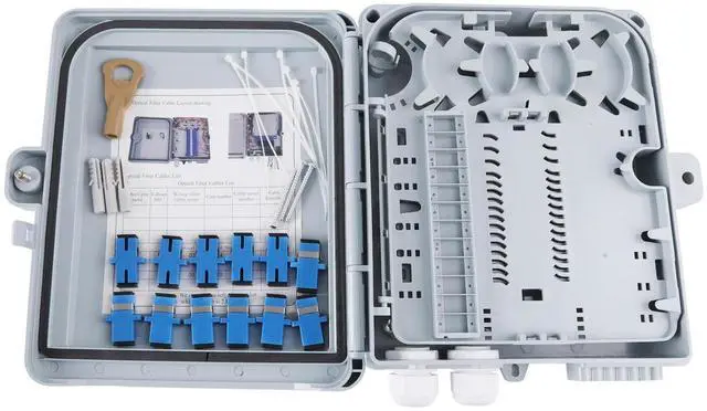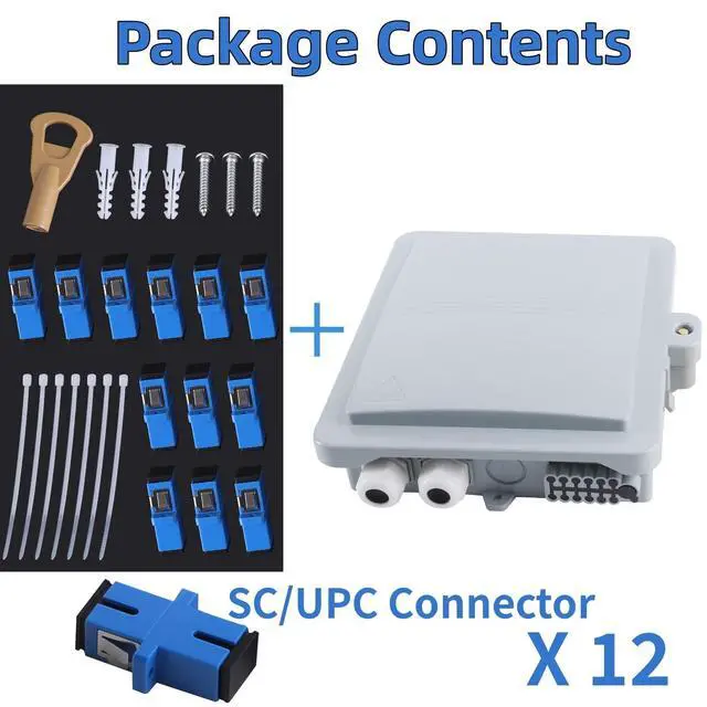 Suitable Size: 240 * 220 * 60mm, small size, simple structure, easy to operate; the package content includes: 1x12 12 ports FTTH optical fiber distribution box; 12x sc/upc optical fiber plugs; installation accessories ^^ Scope of
