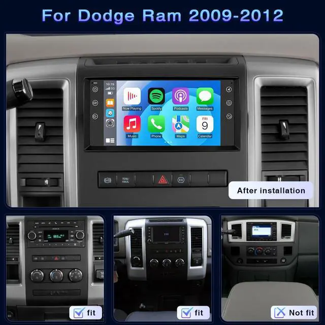 Vehicle FitmentThis Android car stereo is engineered exclusively for Dodge RAM 1500/2500 2009 2010 2011 2012 ^^ With Wireless Carplay & Android AutoThis car stereo is compatible with wireless/wired connectivity with Apple With Carplay and Android Auto, enabling voice commands via Siri or Google Assistant for calls, messages, music, GPS navigation, calls, notification and much more. while keeping your hands free for safer driving operations ^^ GPS Navigation & WiFi The Car radio has built-in Wi-Fi and GPS, supports online maps such as google maps, waze and here maps, shares hotspots through your phone, and can also download offline maps in the app store.