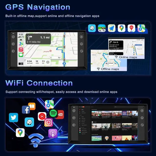 The built-in GPS module integrates high-precision positioning (<10m error) and gyroscope-assisted navigation. With a WiFi connection, you can also download apps from the play store, such as YouTube, Tiktok, Spotify, and more. ^^ FM/RDS Radio & DSP/EQ Sound &BluetoothCar stereo for supports FM/RDS radio with 18 preset stations listening news, music and weather broadcast. The built-in Bluetooth and microphone allow you to make calls, listen to music, navigate maps, and more without hands-free control. DSP audio tuning can customize the best music sound playback effect of different seats according to your needs tuning for immersive sound quality.