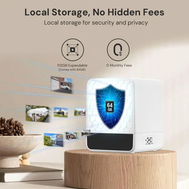 Homebase: All recordings will be encrypted and stored in Homebase without subscription or hidden cost. Built-in 64 GB local storage provides up to 4 months of video loop recording. Even if the security cameras are damaged or lost, the data remains safe. Homebase also provides instant notifications and smart video management ^^ WIFI 6