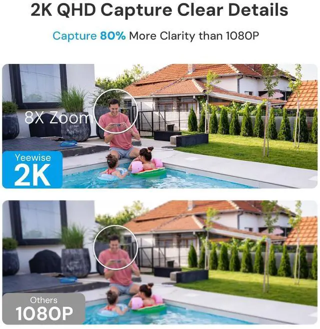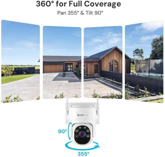 Full Coverage: Designed for comprehensive home security, each outdoor wireless solar camera can be remotely controlled with 355 horizontal and 90 vertical rotationeliminating blind spots and ensuring full protection for your family and property. The four PTZ cameras can be viewed simultaneously on one screen, giving you flexible viewing angles to monitor porches, yards, and driveways without missing a single corner ^^ 2K Resolution &