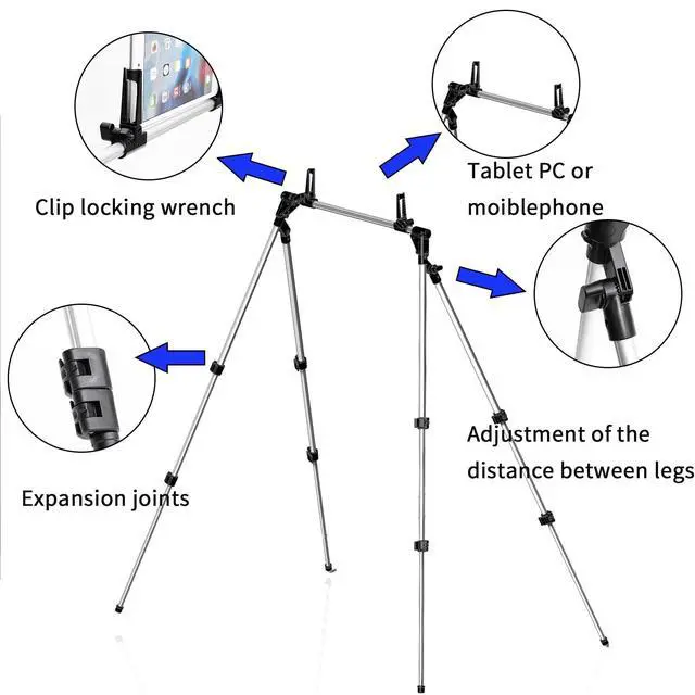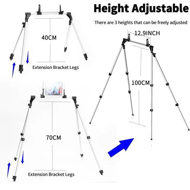 Wide compatibility and freedom of movement: Compatible with all major devices on the market, supports tablets up to 12.9 inches and mobile phones of any size (including large-screen models). No need to worry about model and brand limitations, all can be firmly clamped, easy to use! ^^ Dual snap height adjustment (40CM-100CM)Double snap a pull that can be extended, press can be fixed, can