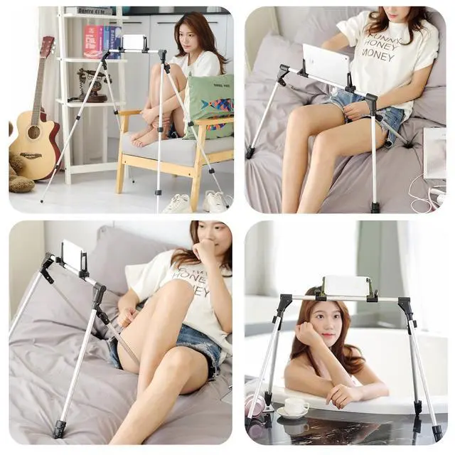 extend the size is: 40CM-100CM, whether lying down, sitting, or watching films, listening to music, learning, reading e-books or chatting, can be easily adapted to meet a variety of needs for use. ^^ Slim four-legged designThe four legs of this stand have a slim and smooth design, which can be easily inserted into the soft ground with a firm grip, especially suitable for outdoor camping, muddy road, beach or grass scenarios. Simply wipe with a paper towel or rinse with water to clean after use, making it an ideal stand choice for outdoor activities. ^^ 360free rotating stand360rotation, flexible angle adjustment, to meet a variety of use scenarios, horizontal and vertical screen free switching, office