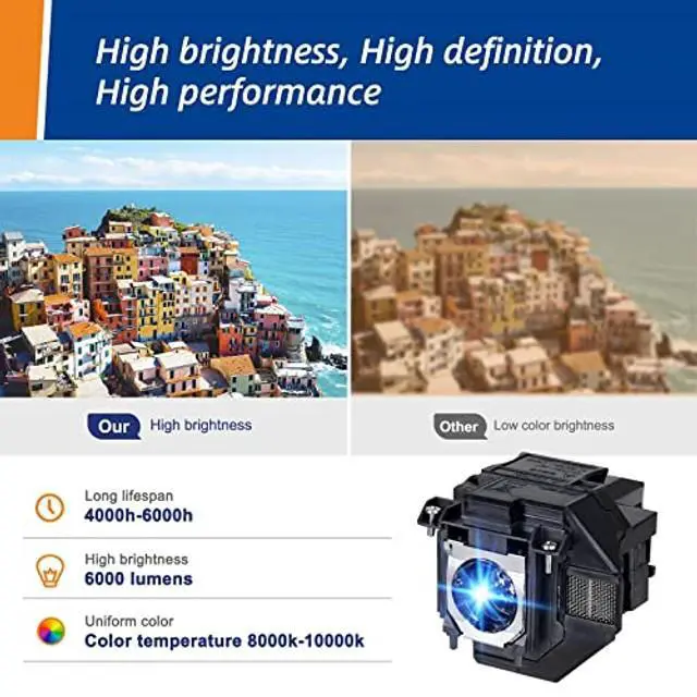 1-Year Warr anty for Risk-Free ConfidenceBacked by hassle-free warranty support, we guar antee replacements for defects or premature wearproof of our commitment to durability and customer satisfaction. ^^ Long-Lasting Durability Built with robust materials and advanced cooling technology to maximize bulb life (up to 5, 000 hours), reducing frequent replacements. ^^ Easy Installation Designed for hassle-free replacement with clear instructions, ensuring seamless setup in minutesno technical expertise required. ^^ Factory-Direct Quality & Precision Crafted in our own state-of-the-art facility, every bulb meets strict OEM standards for flawless compatibility and performance, ensuring your projector operates like new.