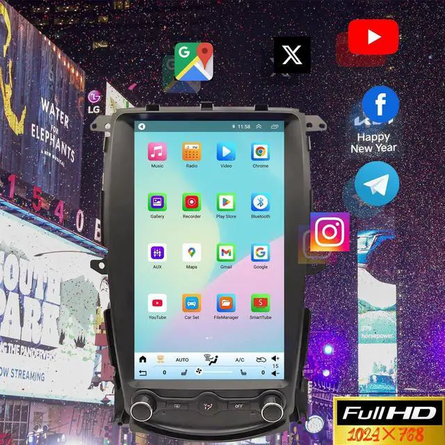 Use voice commands (e. g., Play music or Navigate home) for safer driving. ^^ 13.8" HD Touchscreen + Smooth Performance The 13.8 -inch 1920*1080 HD touchscreen offers a clear and responsive display. The 2.5D glass mirror design is anti-scratch and shatter-resistant, Runs on Android 14 with 4GB RAM + 32GB ROM for fast, lag-free operation. Install apps like YouTube or Spotify directly from the Play Store. ^^ GPS Navigation For CarThis car navigation supports online maps or offline maps.
