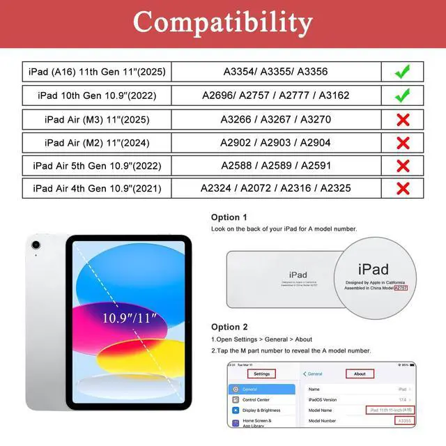 Inch 2025(Model number: A3354, A3355, A3356) & iPad 10th Generation 10.9