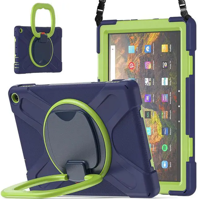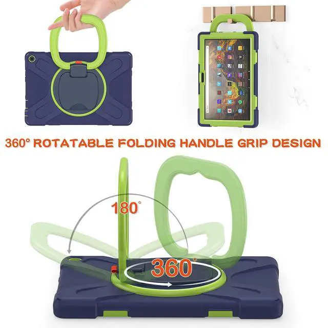 Compatible Models: New Fire HD 10 & 10 Plus 2021 Tablet11th generation, 2021 Release). NOT fit Fire HD105th/7th/9th2015/2017/2019 Release). ^^ Multi function New design in 2021, The 360 degree rotating bracket provides multi angle viewing, providing you with a very convenient and amazing use experience. After the bracket is opened, it can be grasped and carried as a comfortable handle. You can also easily hang your tablet on the wall or anywhere you like ^^ Removable & Adjustable Shoulder Strap Portable shoulder strap, etachable, adjustable length, It is very convenient for you to carry your tablet at work, travel or outdoors, It is also very suitable for children. You can also hang it behind the headrest of the car seat. ^^ Anti-shock The three-layer structure design combining PC and silica gel is shock-resistant, so you dont have to worry about your tablet slipping off your hands and breaking it. All ports, buttons, and cameras can be accessed without removing the case.