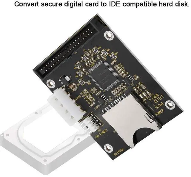 [Secure Conversion] - A PC solution that converts secure digital cards into compatible IDE hard drives for secure storage and startup. ^^ [Wide adaptability] - Compatible with MMC system specification 2.0, SD memory card specification 1.0, and SDHC memory card to meet various needs. ^^ [Easy to Install] - Supports an active power connector for easy connection to a 40 pin computer power supply. ^^ [Flexible ] - The operating system can be installed on the SD card, providing flexible storage solutions. ^^ [Quiet Work] - The workstation has no hard drive noise, providing a quiet working environment and enjoying a quiet user experience.