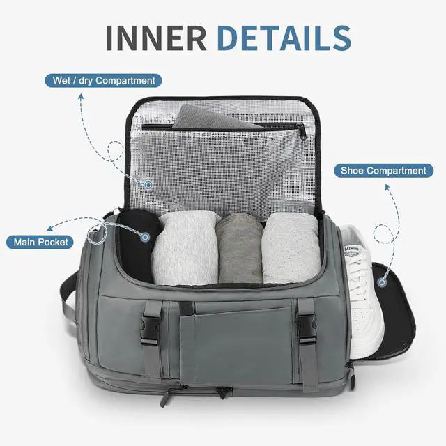 Capacity & Expandable DesignThe travel backpack for men size (LxWxH) is 11.8" x7"x 16.9" / 30x18x43 cm, has multiple compartments, a main compartment with a capacity of 35L. A separate computer compartment with a protective pad, with 2 front compartments, side pockets can hold umbrellas and water bottles, and 2 small compartments on the top and another sides for easy access to items. Opening the side zipper can expand the capacity to 38L-40L, it can hold for 2-3 day trips clothes or camping tools ^^ Dry-wet Separation & Independent Shoe Compartment: This travel backpack for women and men has a separate shoe compartment at the bottom, which can store shoes separately and keep them clean and tidy. The shoe storage space can accommodate shoes for daily travel. There is also a dry wet separation area inside the outdoor sport backpacks, which can be used to store toiletries and other wet items. The practical design makes daily exercise or short trips more convenient ^^