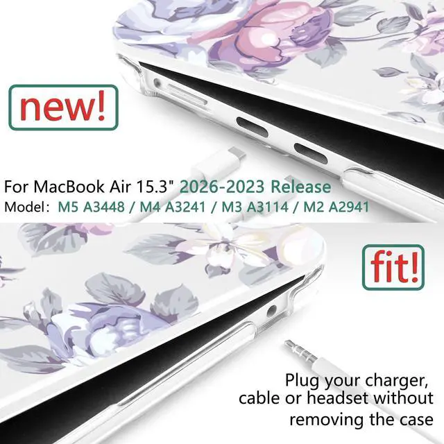 M5 (Model: A3448, 2026 Release). Also fits M4 A3241 (2025), M3 A3114 (2024), and M2 A2941 (2023). Please check the model number "Axxxx" on the bottom of your laptop before purchase to ensure a perfect fit. ^^ [Vibrant Patterns & Long-Lasting Beauty] Features high-definition UV printing with stylish, artistic designs that are resistant to fading, peeling, and scratching. This durable hard shell protects your MacBook Air 15 from daily scuffs and abrasions while showcasing your unique personality with a premium, long-lasting finish. ^^ [Ultra-Slim & Lightweight Design] Crafted from premium polycarbonate, this two-piece snap-on case is tough yet incredibly thin. Weighing only 13.4 oz, it adds zero bulk to your laptop, preserving the sleek aesthetic of the Air 15 while providing a secure, natural grip in your hand. ^^ [Safe Cooling & Precise Access] Fully vented at the bottom for safe heat disbursement to prevent overheating. All ports and features, including magnetic charging port, USB-C, and Touch ID, are easily accessible with precise cutouts. No need to remove the case to plug in your charger, cable, or headphones.