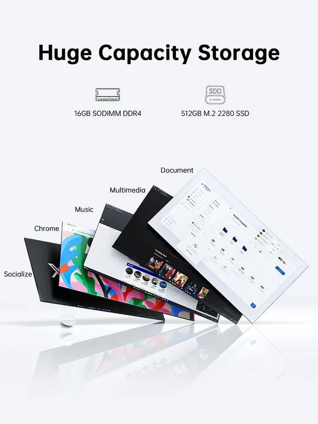 • Powerful ConfigurationFeaturing 16GB of DDR4 RAM and a speedy 512GB M.2 SSD, this notebook offers a 50% performance boost compared to DDR3-equipped machines and ensures seamless system operation while accommodating your personal files. Support expand your storage with a 128GB TF card, and enjoy the convenience of a pre-installed operating system. The 256 GB SSD can be replaced with a maximum SSD of 2TB to provide you with ample space to record and store your files/favorites.