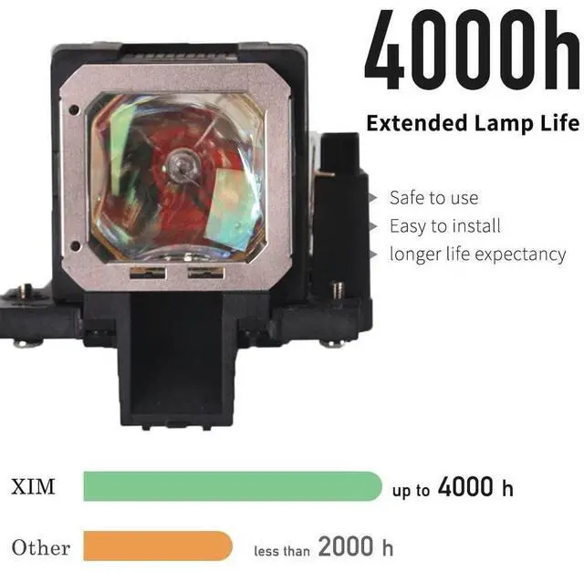 Compatible Models: Replacement bulb for JVC DLA-F110 DLA-RS40 DLA-RS40U DLA-RS45 DLA-RS4800 DLA-RS50 DLA-RS55 DLA-RS55U DLA-RS60 DLA-RS60U DLA-RS65U DLA-VS2100NL DLA-X3 DLA-X30 DLA-X30BU DLA-X30WE DLA-X3B DLA-X3BE DLA-X3W DLA-X7 DLA-X70R DLA-X70RBU DLA-X9 DLA-X90R DLA-X90RBU DLAVS2100 DLAVS2100P RS4800 X30 X70 X90 ^^ Replacing a new projector bulb is cheaper than upgrading the projector. Also, used as a spare lamp to replace a burned out projector bulb. ^^ All projector lamps produced by our factory have been strictly tested. It is durable and will not explode under normal use conditions. ^^ Using a new manufacturing process, the life of the bulb is increased by 20% in ECO mode. ^^ You can return or exchange new products without any questions within 200 days.