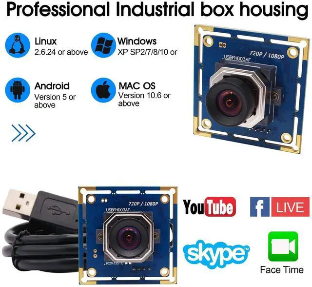 Autofocus 100degree no distortion lens: Shoot objects at millimeter level and in the distance on the same camera, automatically controlled without lens adjustment tool, closer and easier than the fixed focus camera, wide angle of view about 85degree (HFOV) ^^ High Frame Rate can drive 480P@100fps, 720P@60fps, 1080P@100fps, super small and mini Size for your lightburn laser engraver. Compact lightburn laser camera for all kinds of machine vision. ^^ Just plug the USB cable into your PCs USB port, plug and play, there is no need to download or install complicated driving software. Picture format MJPEG or YUY2 optional, lightburn camera with high resolution can be used in any video system for personal or industrial. ^^ Embedded USB webcam widely works with WinXP/Vista/Windows 7/8, Windows 10 Linux with UVC. USB camera module for MAC, PC, desktop computer, laptop USB.