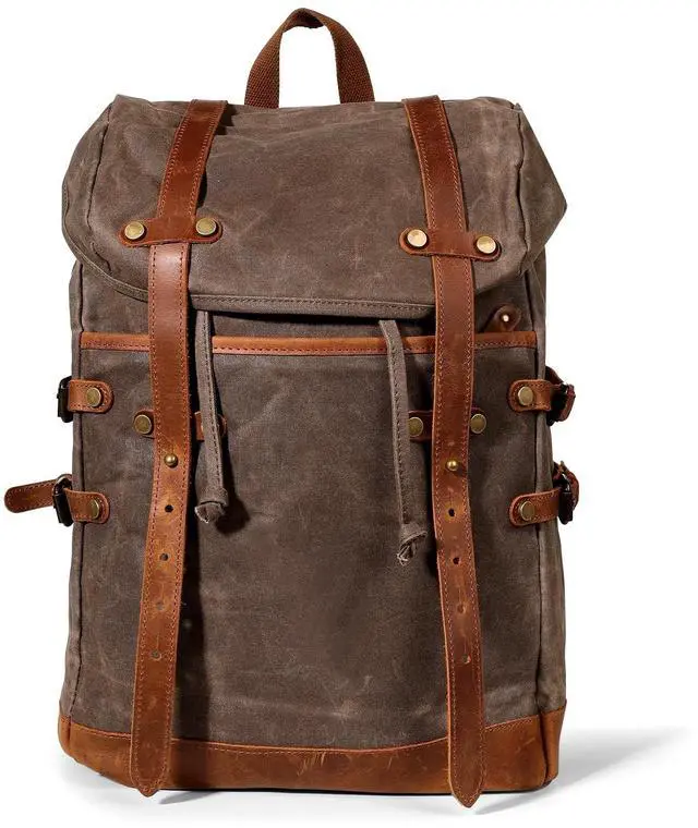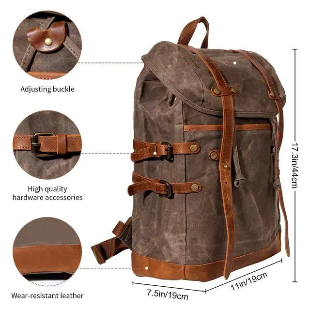 ^^ DESIGN: Premium water repellent waxed canvas, it can protect your stuffs inside against the sudden rain. Its wide shoulder strap design is dispersion the weight and have Comfort and durability, this strap can easily adjust its length when needed. Carrying handle made of the same cowhide and fixed by high quality hardware, which makes the canvas backpack easy to use. A organized laptop backpack with quick-access any of your belongings.