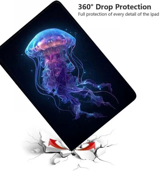 ZHJLZQAI Case for ipad 9th/8th/7th Generation 2021/2020/2019 10.2 inch,Slim Lightweight Adjustable Viewing Angle Stand,Auto Wake/Sleep,Blue Jellyfish