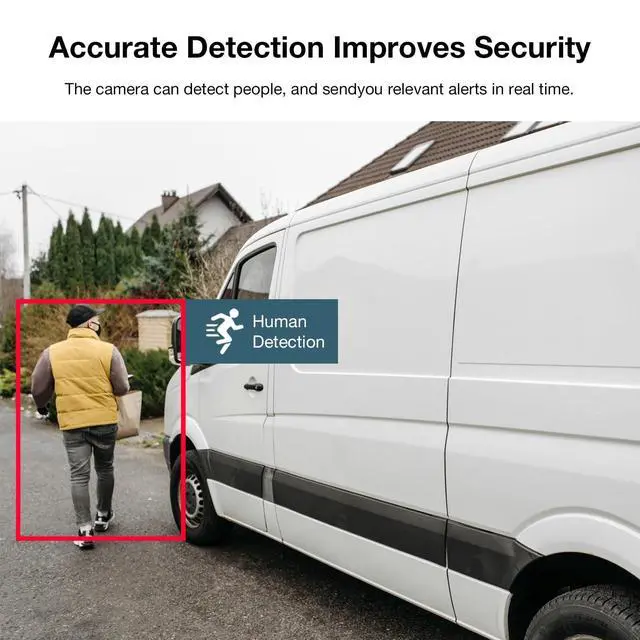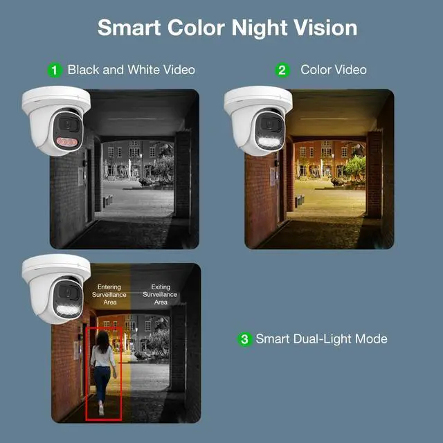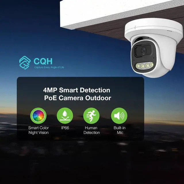 Power Over Ethernet: IP PoE camera has a 4 Megapixel 2560*1440@30fps, equipped with a 1T NPU chip & AI algorithm model. This outdoor security camera features 65ft Dual Light (Infrared + White Light) Night Vision, ensuring sharp and detailed imaging in all low-light environments day and night. PoE allows IP (Internet Protocol) devices to receive power and data via existing LAN cabling, simplifying installation with no additional power outlet needed ^^ Dual H. 265/H.