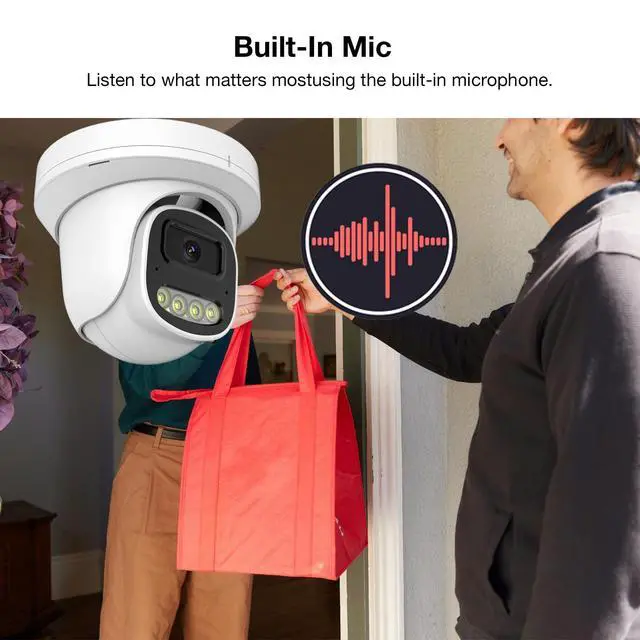 View: IP camera features a rugged waterproof housing that can withstand -80 to 140 degrees Fahrenheit and is dust and rain resistant. The fixed 2.8 mm wide-angle lens provides a 110 field of view, allowing you to monitor a wider area, such as your front yard, backyard ^^ Easy Plug and Play with