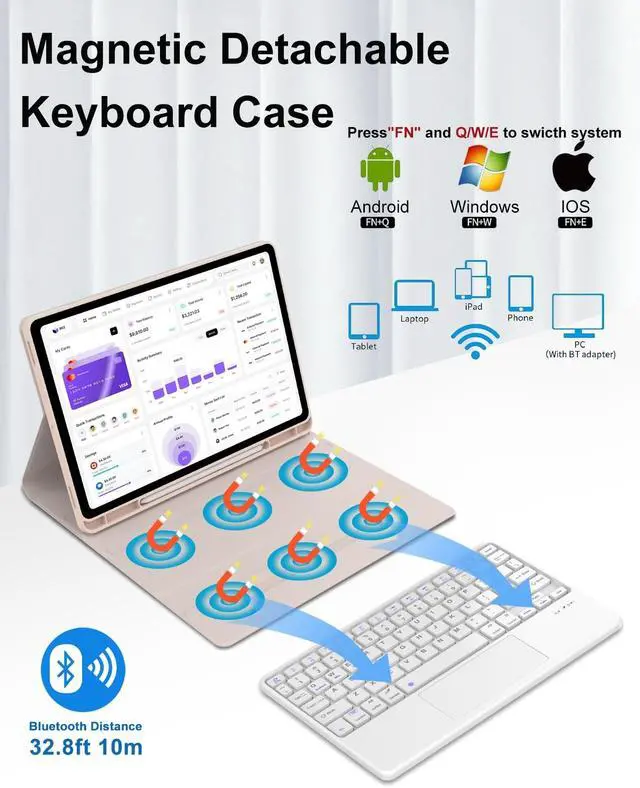 Magnetic Detachable Keyboard Case Stand:The S11 Galaxy tablet 11 inch keyboard and protective cover adopt a magnetic separation design, allowing for easy disassembly and connection.The central magnetic area is strong, allowing you to combine the protective cover and keyboard for daily work, study, and life. When the case and keyboard are separated, you can enjoy portrait mode, drawing mode, reading mode, and freestyle mode. Switching between Tablet and Laptop modes becomes effortless