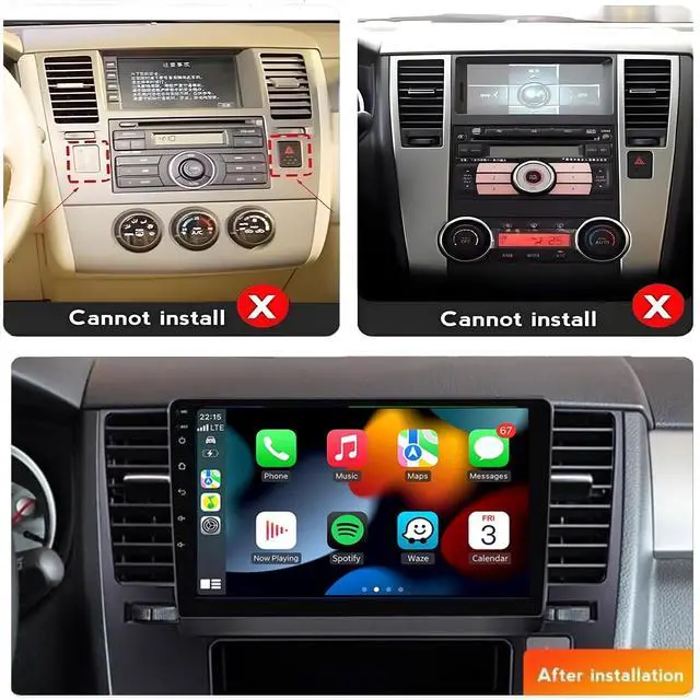 Nissan Versa: This car radio for Versa MK1 2007 2008 2009 2010 2011. Experience the latest in automotive technology with this 9-inch touchscreen navigation system running on Android 13. Enjoy seamless multitasking with a 4-core CPU, 2GB RAM, and 32GB ROM for ample storage. ^^ with Carplay & Android AutoThis car stereo for the 2007 Versa MK1 is susport with Carplay and Android Auto, allowing you to connect via Bluetooth and Wi-Fi to display your smartphones content on the large screen. You can use Siri or Google Assistant to make calls, navigate, play music, and manage other applications easily. ^^ GPS Navigation & WiFiThe 9-inch radio for Versa MK1 2008 features a dual navigation system that supports both offline and online maps, ensuring safe driving even in areas with weak mobile signals. Additionally, connecting to Wi-Fi allows you to access various phone features directly on the with Carplay stereo screen for added convenience. ^^ Bluetooth & FM Radio The upgraded radio for the Versa MK1 2009 enables hands-free calling and music playback via Bluetooth. It comes with a built-in microphone and supports both internal and external microphones for clear communication.