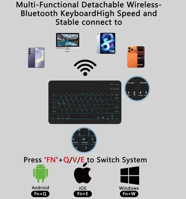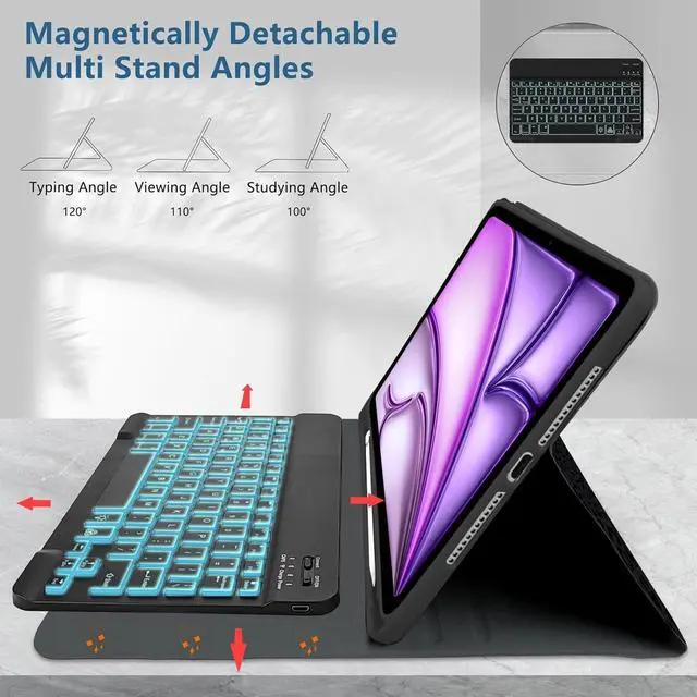 Note: It will not be compatible with other for iPad ^^ [LED Backlit Keyboard] 2 light modes (Monochromatic and gradient light), three-level adjustable brightness and 7 pure led backlit, engaging yourself in a free and relaxed typing experience in any dim condition. The backlight will automatically turn off if you are not typing for over 30 sec to save power ^^ [Rechargeable Keyboard] The for iPad Bluetooth keyboard has a built-in battery with high stability, so you don't need to replace the battery. You can charge the keyboard using the charging cable that comes with the keyboard. The keyboard has a Bluetooth acceptance range of 10 meters. If you don't need to use the keyboard, you can remove it and turn it into a regular for iPad case, which makes for a handy experience ^^ [Automatic Sleep/Wake] This for iPad case will automatically put your for iPad to sleep when you close the front cover of the case. Because an iron keyboard may prevent magnets from attracting to each other, remove the keyboard for optimal sleep/wake up (Detachable, Rechargeable, Magnetically Absorbent) ^^ [Include Content] The box contains the for iPad case, Bluetooth keyboard, keyboard charging cable, and instruction manual.