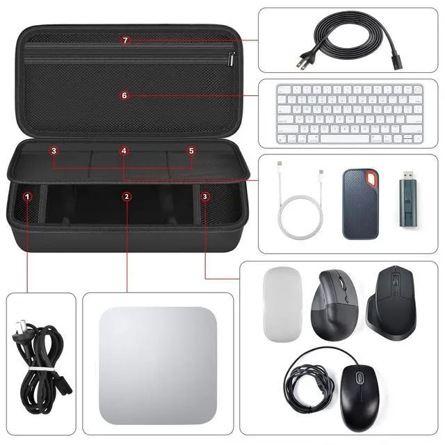 Electronics Organizer Perfect Fits: For apple desktop travel case is designed for apple 2024 mac mini m4/ m4 pro desktop computer. For mac mini m4 case fits for Apple magic/ for logitech mx master 3s / for HP X3000 G2/ for Uiosmuph G12/ for Logitech B100 corded and wireless mouse. For apple mac mini m4 bag external size: 12.2 * 6.3 * 3.54 inches, inter size 5.12 * 5.12 * 2.36 inches (for mac mini computer), 3.54 * 5.12 * 2.36 inches (for mouse), 2.36 * 5.12 * 2.2. 36 inches (for adapter) ^^ Large Capacity for Apple Computer Mac mini