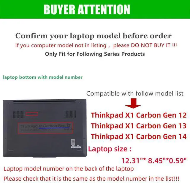 D): 12.31" * 8.45" * 0.59", Weight: 0.77 lb., not fits any other laptop. Cover only fits for Thinkpad X1 Carbon Gen 12/ThinkPad X1 Carbon Gen 13/ThinkPad X1 Carbon Gen 14 ^^