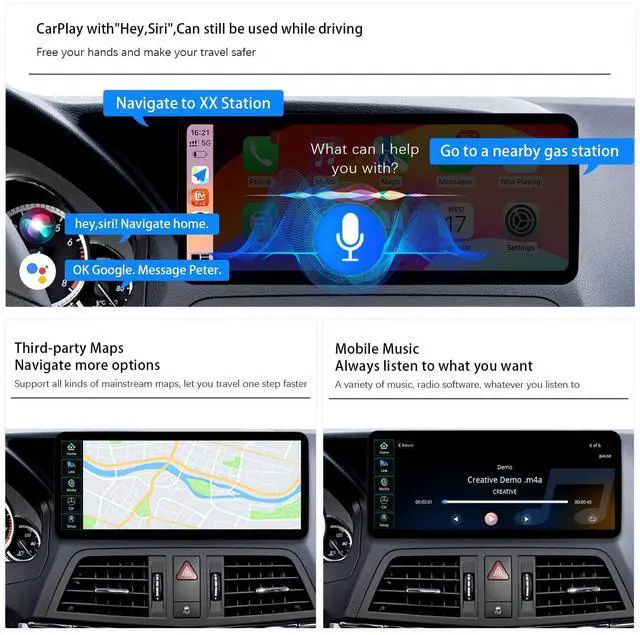 ^^ Dual system, One click switch between Linux system and original car system, The upgraded capacitive touch screen retains all original functions and adds Linux system features, greatly enhancing your experience. This includes the original car radio, amplifier function, factory steering wheel control, original car mouse knob, display speed, fuel level, oil pressure, safety warning, and original reverse camera. No software changes will be made to the vehicle's control unit. ^^ Supports wireless (wired) Apple Carplay, wireless (wired) Android Auto, wireless mirrorlink for iOS and Android phones, Bluetooth, WI-FI.