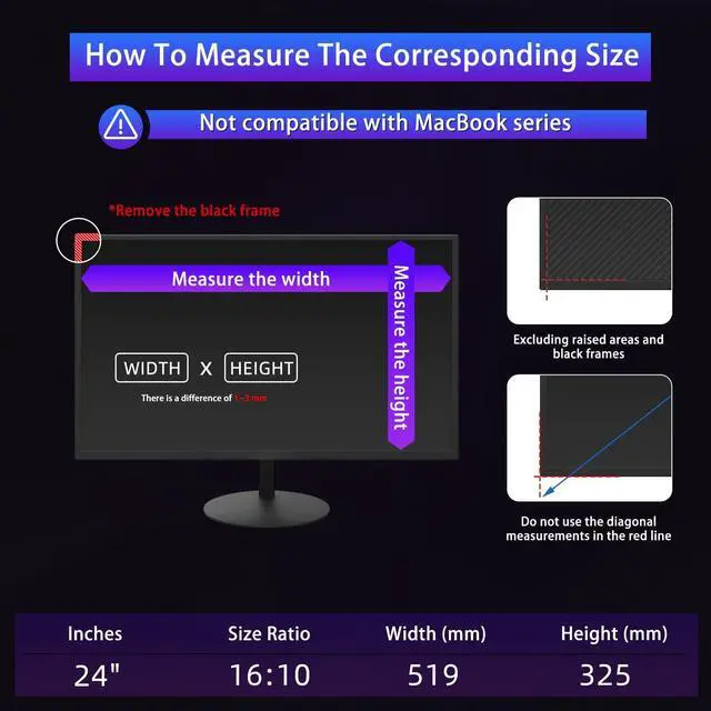 Compatible Dimensions24 inch Privacy Screen filter 16:10 Aspect Ratio