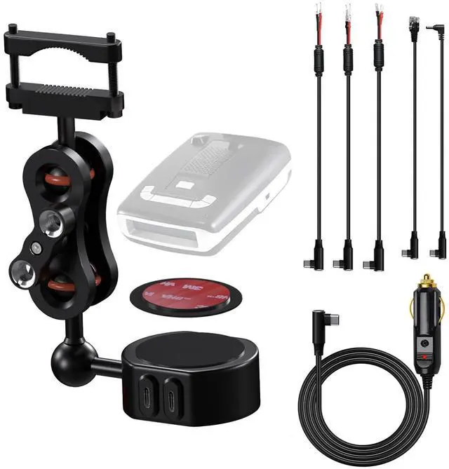 ^^ Package Includes1x Aluminum Magnetic Radar Detector Mirror Mount; 1x Round Metal Plate; 1x 12V Cigarette Lighter Power Cord; 3x Mirror Tap Power Plugs; 1x RJ11 Power Cable; 1x DC 3.5 Power Cable; 3x Cable Ties; 2x Long Screws; 2x Small Wrenches; 4x Spare Damping Rings; 1x Instruction Manua.