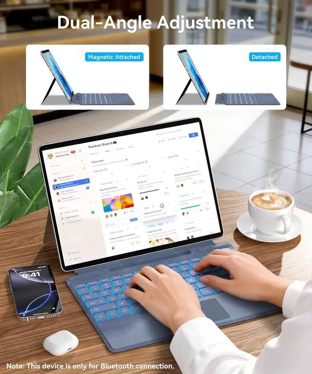 Angle & Auto Wake up/Sleep]: You can adjust your keyboard at different angles for more comfortable typing and viewing. surface pro keyboard can detach or attach a more ergonomic typing angle through magnetic adsorption, you can adjust the surface keyboard to a comfortable angle when typing, sketching, watching and working.