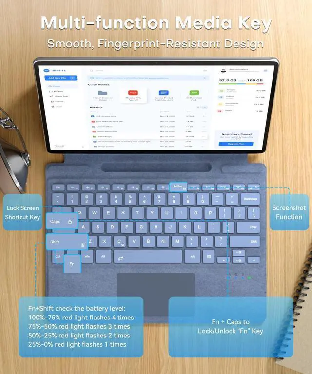 Shortcut Keys]: The first row of the keys on the wireless keyboard are shortcut ones, which cover the functionality like screenshot, lock screen, volume adjustment, etc. These keys work independently and do not rely on the combination with the Fn key. ^^ [Adjustable