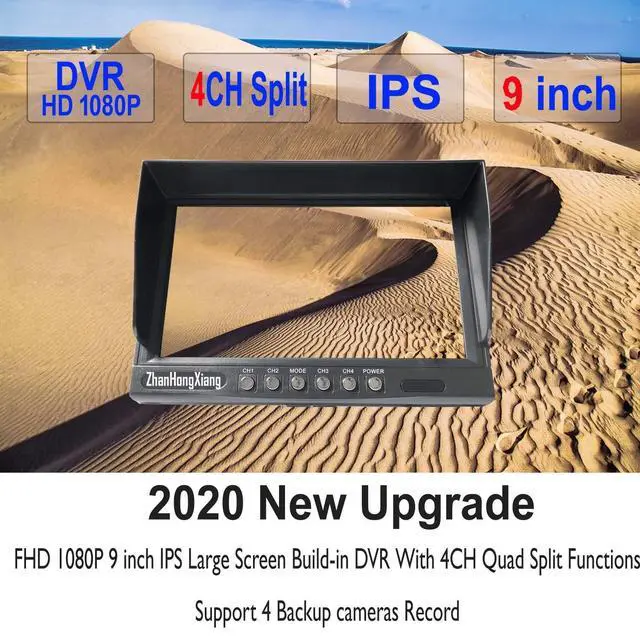 8WVideo: 4 channels input, Quad Split Screen DisplayOur Split monitor can display 4 video at same timeFull images/3 images/4 images adjustableBuild in SD DVR Great Loop Recording functionsEach camera Record with a separate videoCome with 32GB SD Memory Card, Max support 128GBReverse Grid Lines Can be turn on or offImage Can be adjust for mirror or none MirrorImage Support Flip with Upside DownSuitable for Front view/ rear view/side view360clearly View to avoid blind spotNet
