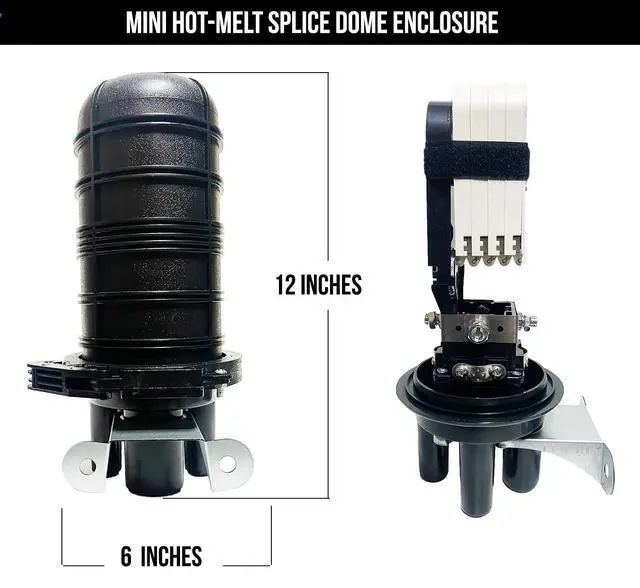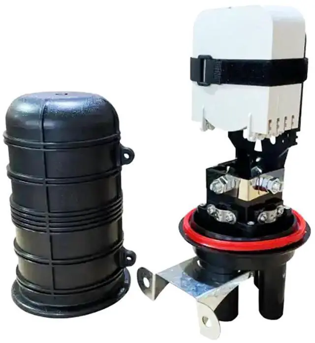 Introducing our Aerial & Direct Burial Fiber Optic Cable Enclosure with Fiber Splice Tray and Fusion Splice Sleeves (60mm). Designed for all-weather protection, this enclosure ensures uninterrupted signal transmission even in extreme conditions. With a post mount design for optimal signal distribution, it's fusion splicing ready, making network reliability a breeze. The vertical hot-melt sealing design guarantees strong and durable protection, accommodating various cable types for versatile networking setups. Plus, its user-friendly installation and expandable capacity ensure reliable longevity, making it perfect for public installations and long-term outdoor use.